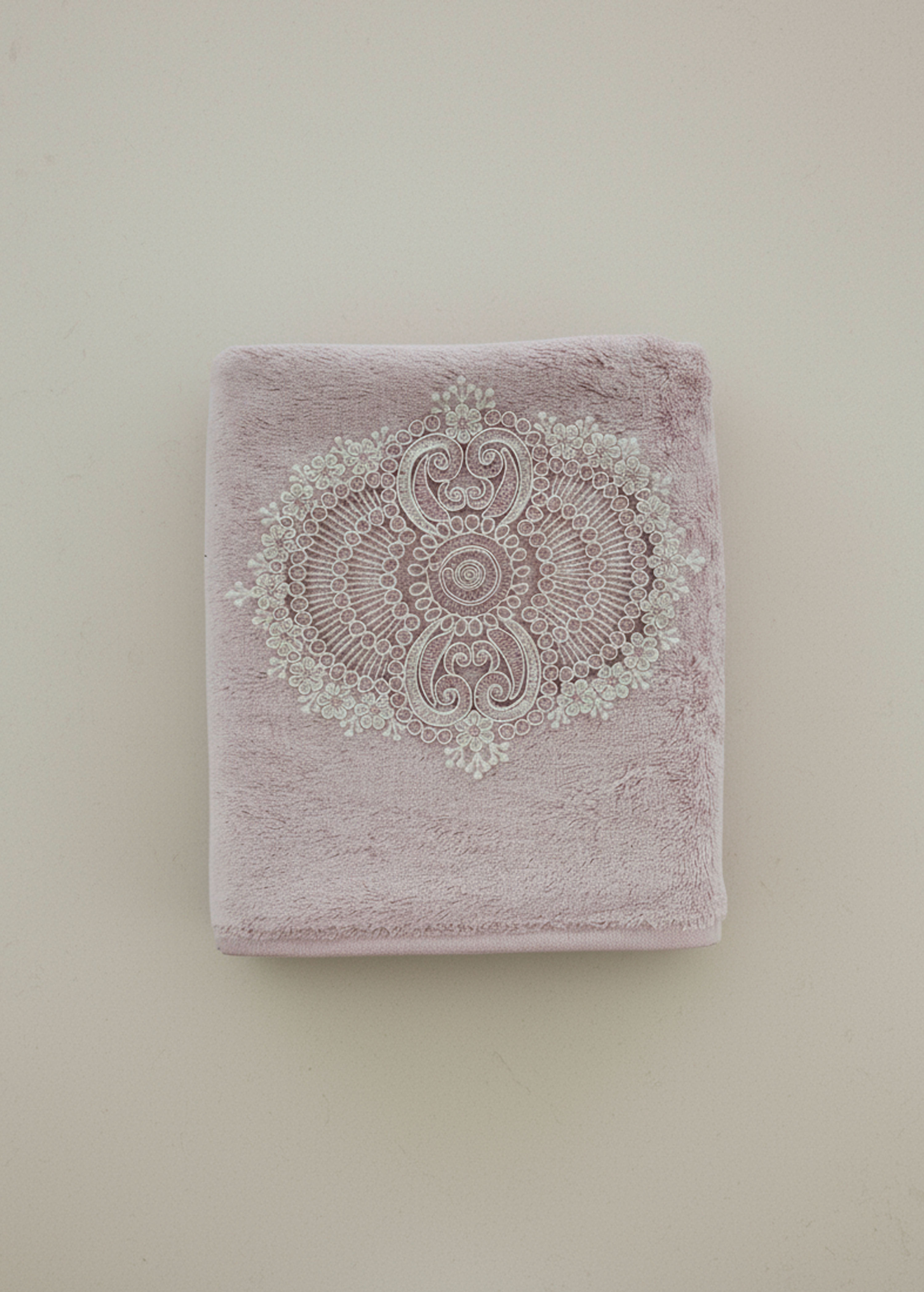 Class Bambu Dantelli El ve Yüz Havlusu 50 X 90 cm Şiraze Pudra 1 Adet Tekli Kutulu 250 Gram